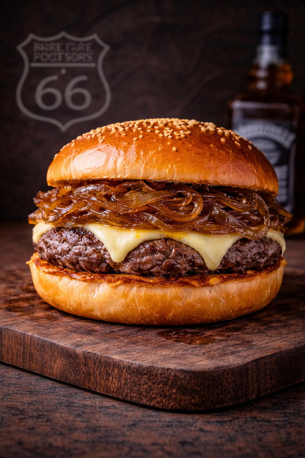 Beef pattie, layered with melted American cheese and crowned with slow-caramelized onions infused with Jack Daniel’s.